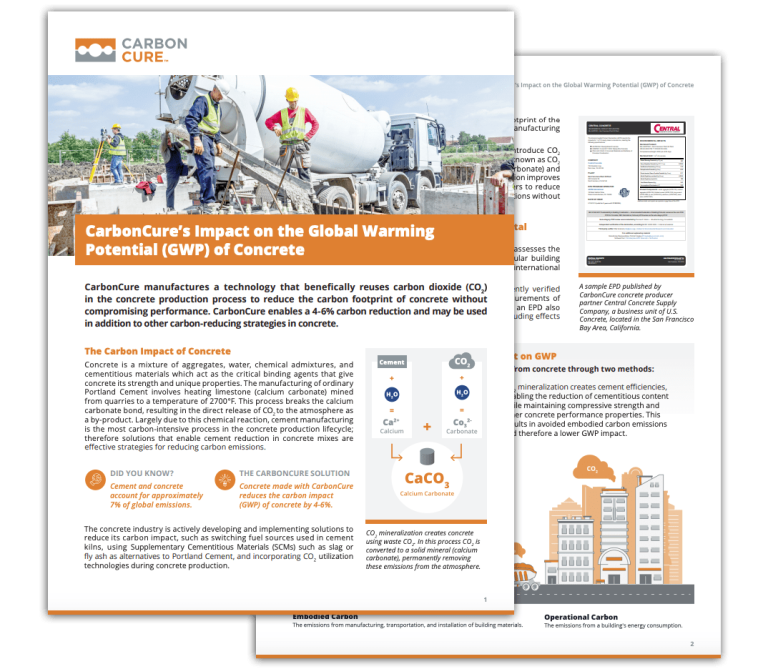 The CarbonCure solution enables the production of the same reliable concrete but with a reduced carbon footprint.