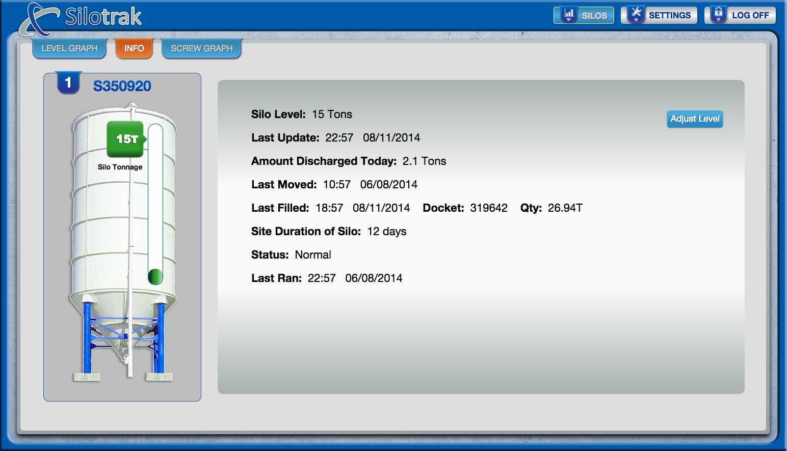 - Silos are colour coded on the portal to advise of current status.